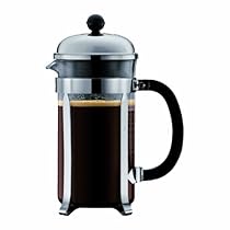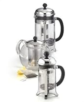 - Sturdy chrome-plated brass frame; easy-to-clean glass carafe