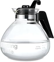 Medelco 12-Cup Glass Stovetop Whistling Tea Kettle. A great way to boil water for tea coffee cocoa soup and MUCH more. Made from Lab-Quality boroscilicate glass with a heat-resistant handle the kettle is designed for use on any type of stove and the classic design works well with any decor.